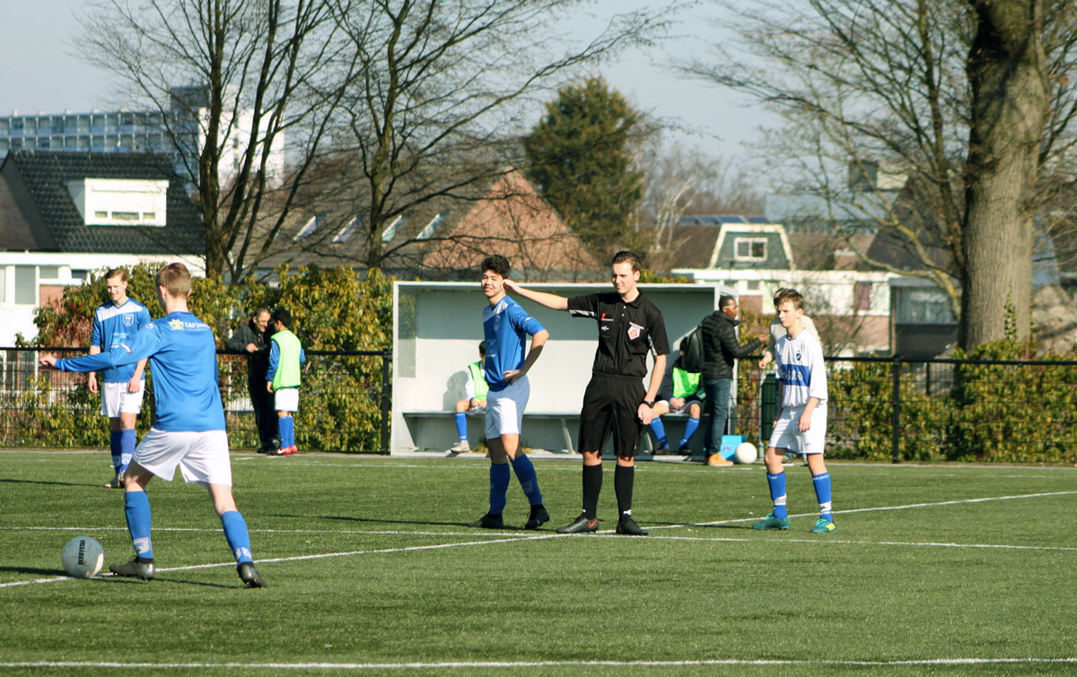Clubscheidsrechter Thimo Weijts begint aan de wedstrijd MOC’17 J17-2 DSE J017-1.