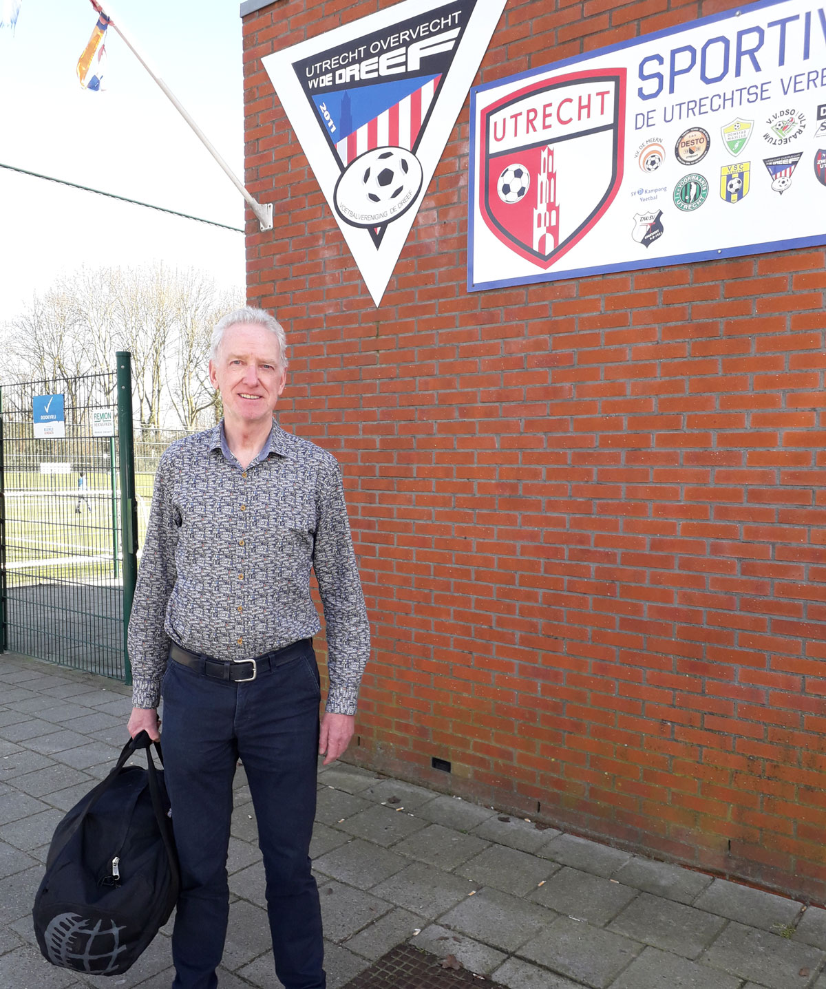 Scheidsrechter Leo Blank zondag 24 februari bij aankomst op complex van De Dreef in Utrecht, 82,2 kilometer verwijderd van zijn woonplaats Berkhout.
