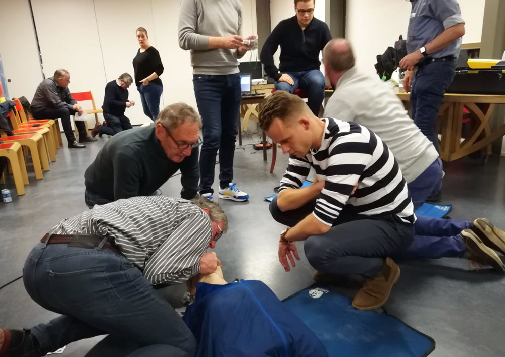 Al jarenlang organiseert de Scheidsrechtersvereniging Groningen een reanimatietraining, omdat in geval van nood elke seconde telt. De jaarlijkse training is zowel bedoeld als herhaling voor degenen die eerder deelnamen, als voor nieuwe helden. De training is praktijkgericht en deelnemers krijgen na afloop het officiële NHS-certificaat. En enkele deelnemers brachten de geleerde kennis al in de praktijk, dus de jaarlijkse training is daadwerkelijk van levensbelang! Op 11 februari jongstleden was het weer zover en deden dertien mannen en vrouwen mee aan de training. Naast leden van de scheidsrechtersvereniging waren er ook enkele leden van ‘huisbaas’ GRC Groningen. Ook een idee voor andere scheidsrechtersverenigingen?