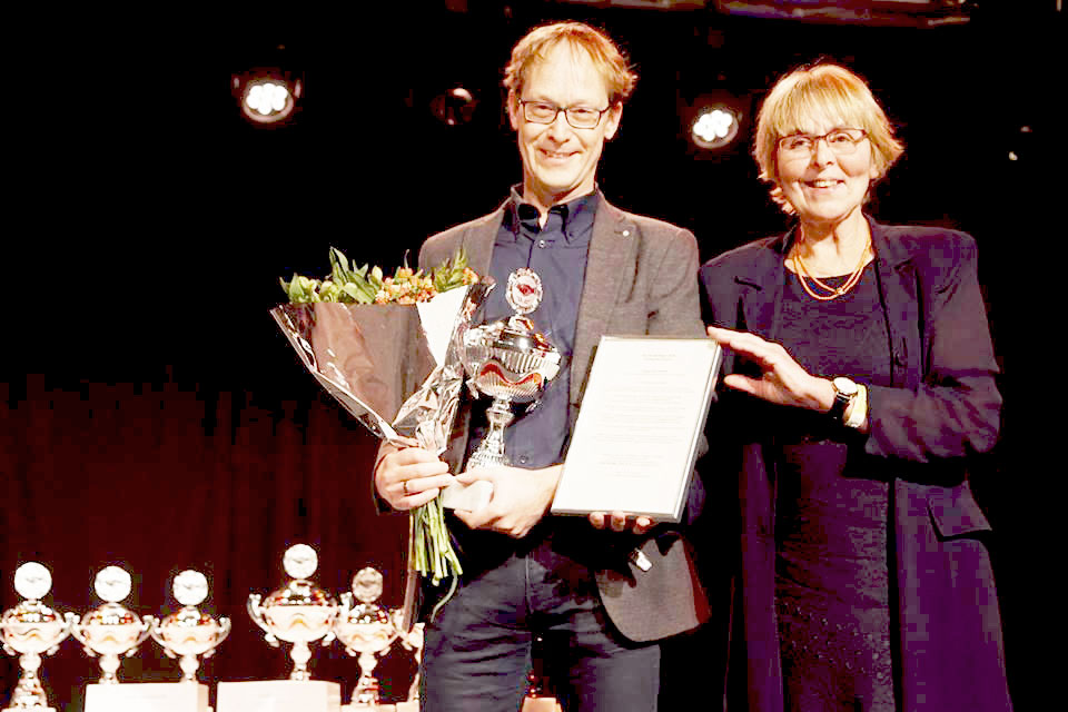 Edgar Voortman (links) werd tijdens het sportgala in de gemeente Emmen gekozen tot sportvrijwilliger 2018.