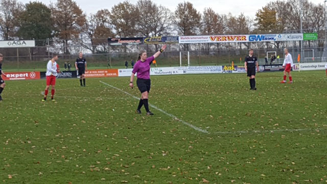 De 18-jarige Meike Steffens uit Nieuw-Schoonebeek floot onlangs de streekderby FC Klazienaveen JO 15-1 - SC Erica JO 15-1. Meike kijkt met een goed gevoel terug op het duel. Voor de fanatieke arbiter werd het een onvergetelijke ervaring om bij een buurvereniging te fluiten. “Ik ben gevraagd of ik een wedstrijd in Klazienaveen zou willen fluiten. Dit was een wedstrijd in de eerste klasse van de jeugdcompetitie, iets wat ik anders niet zo snel zou kunnen doen. De ervaring die ik hierdoor zou opdoen, zou super zijn in mijn leerproces.”