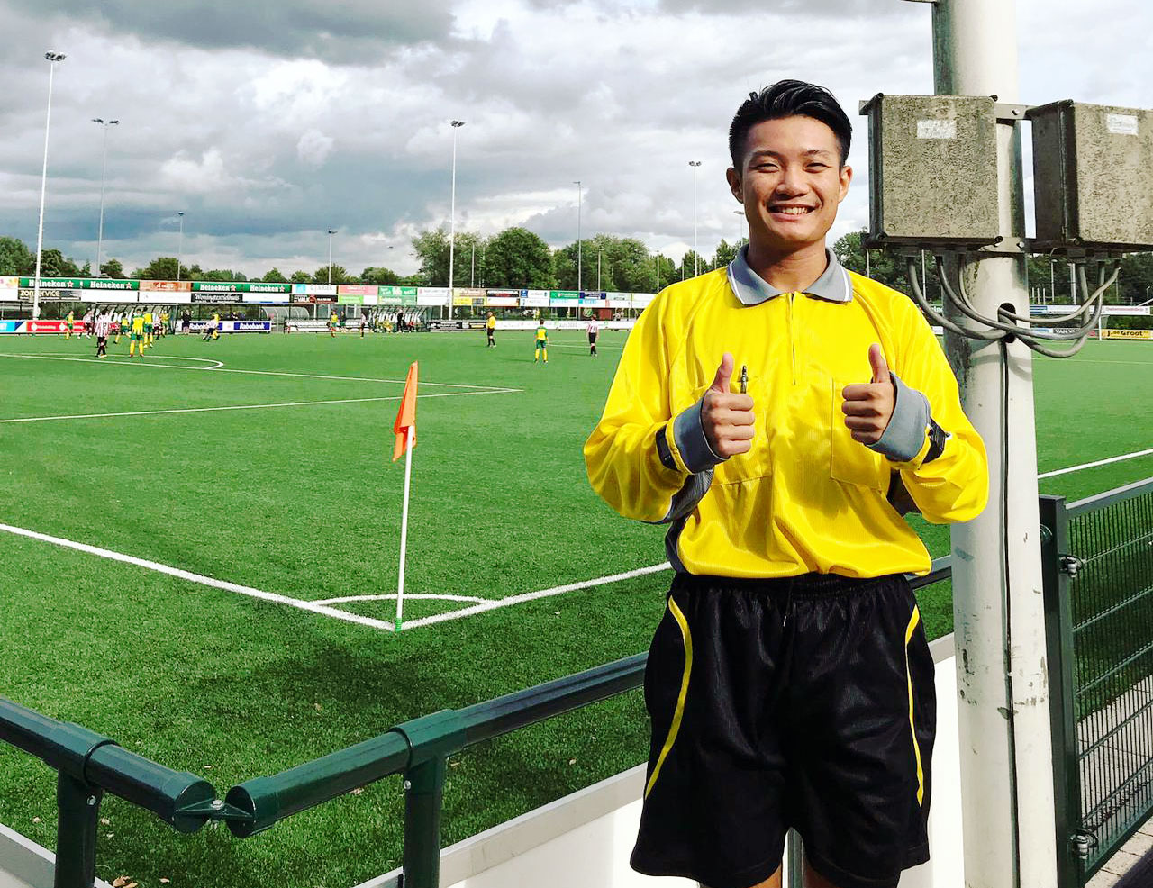 Student Clarence Leow traint mee bij scheidsrechtersvereniging en fluit wedstrijden bij Voorschoten '97