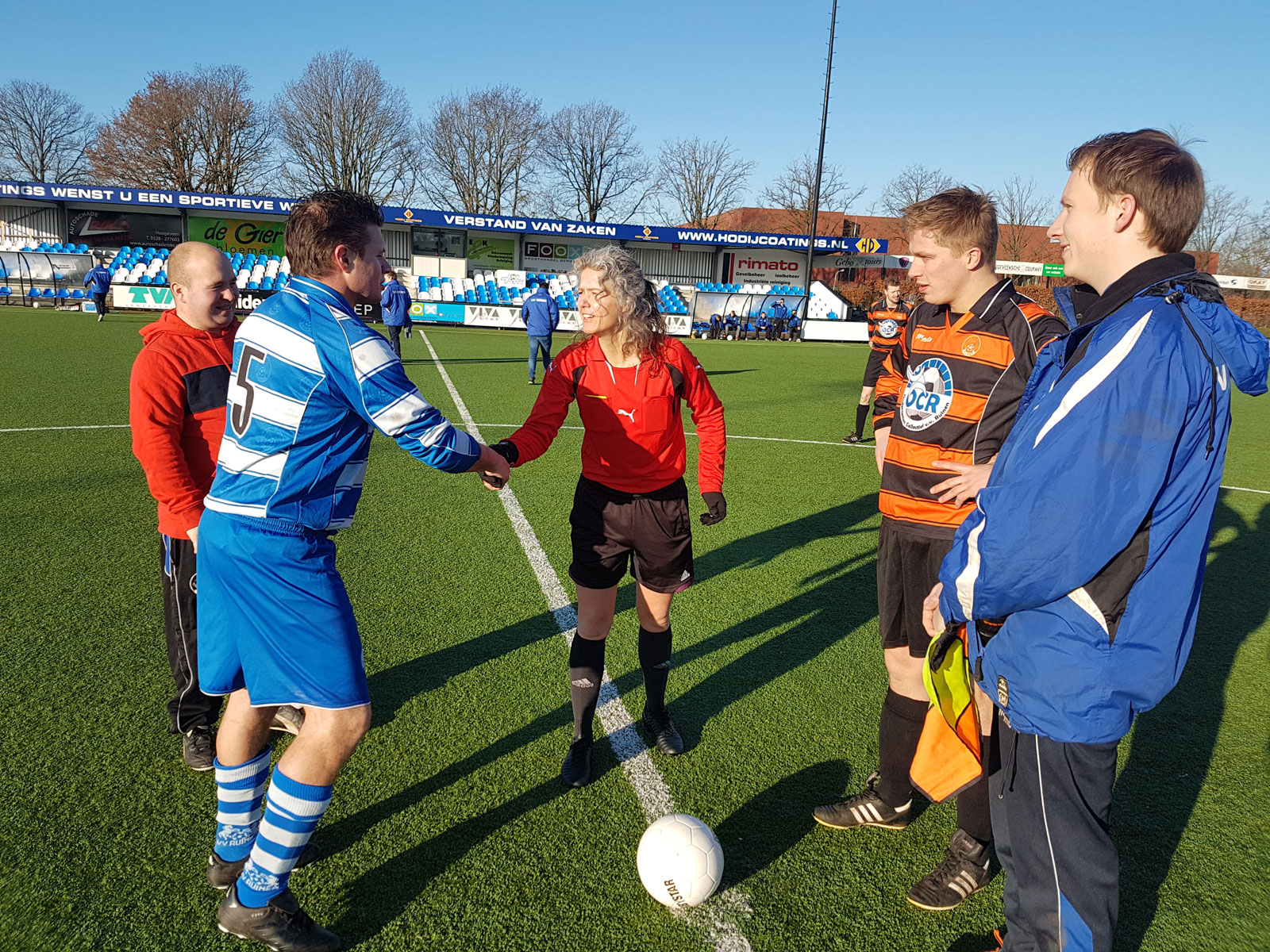 Judith ter Bork op 3 februari bij aanvang van de oefenwedstrijd Ruinen 2 – Ruinen 3. Foto Sander Dekker.