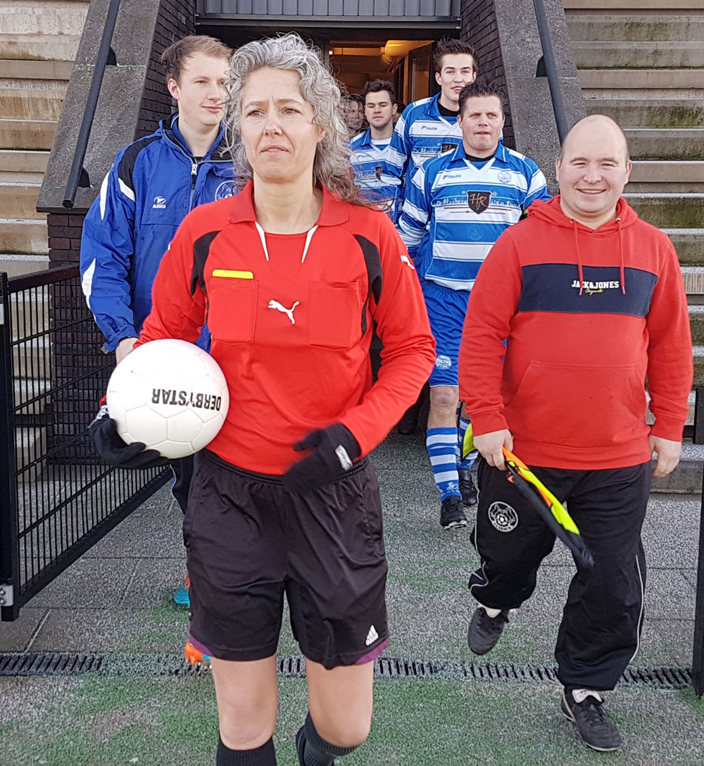 Totdat ze via de klusser tien jaar geleden weer in aanraking kwam met de arbitrage. Al schrok ze wel toen ze die eerste keer het veld op liep: “Het bleek een wedstrijd bij de D-pupillen. Op een groot veld en met echte spelregels, inclusief buitenspel. Achteraf was het echter superleuk.”
